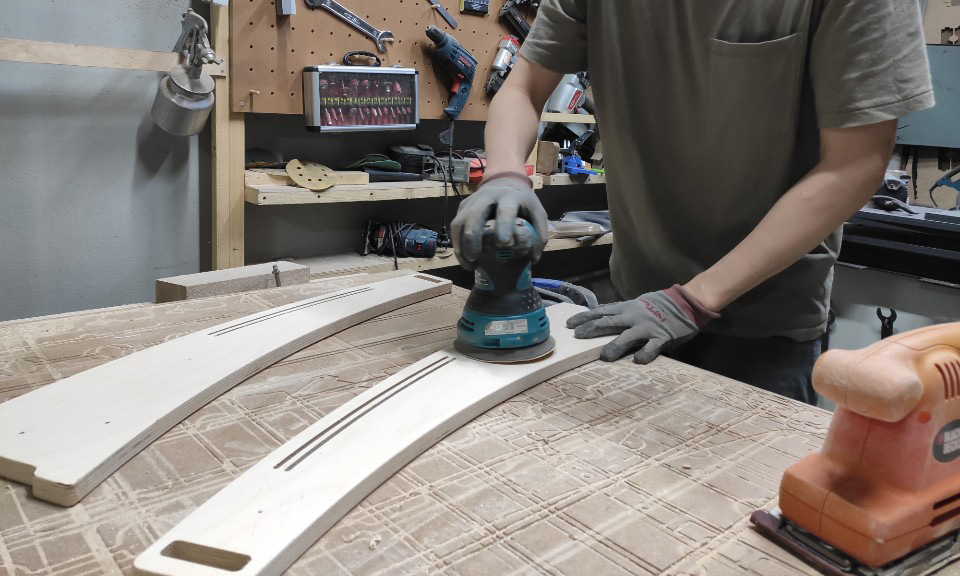 CNC 완료된 제품들을 열심히 샌딩한다.