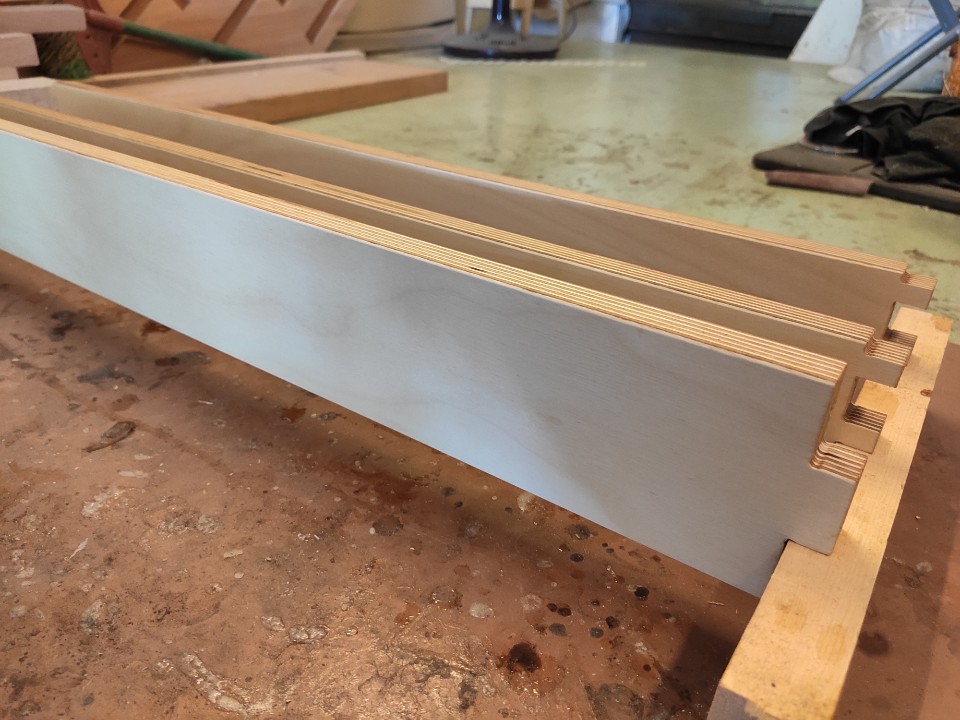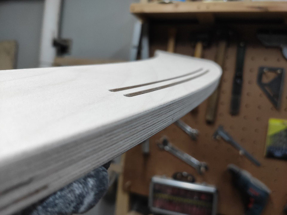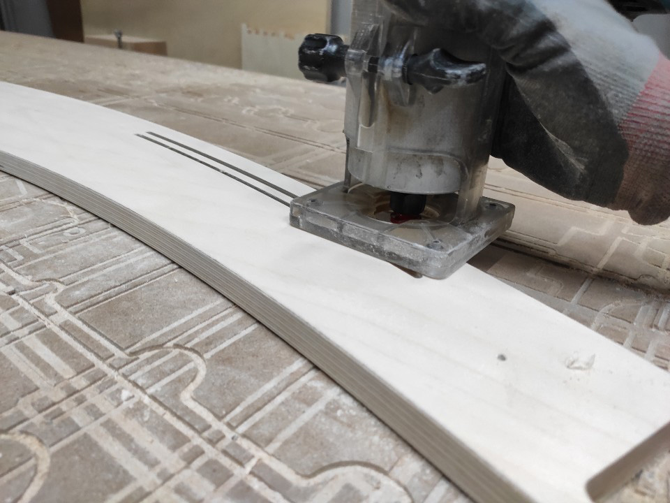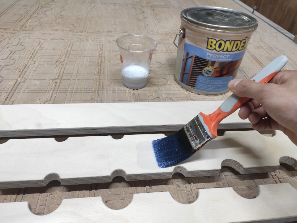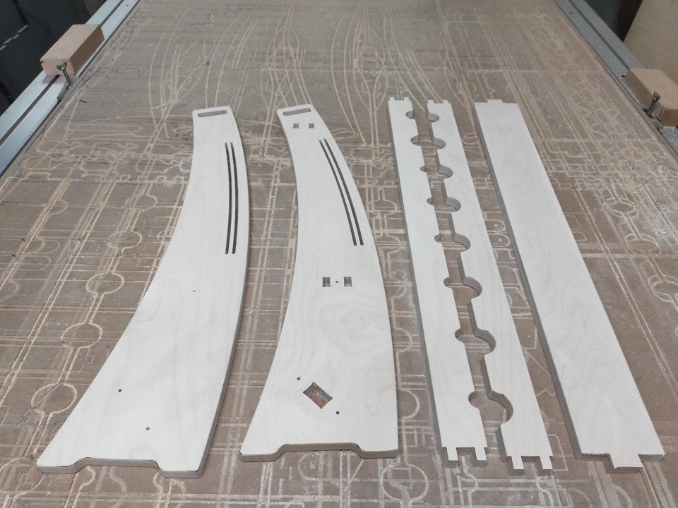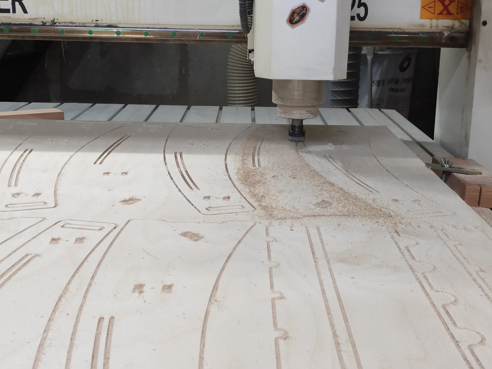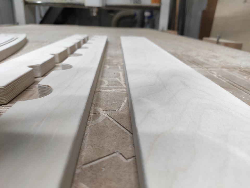 CNC 작업이 완료된 자작나무 합판 원장이다.