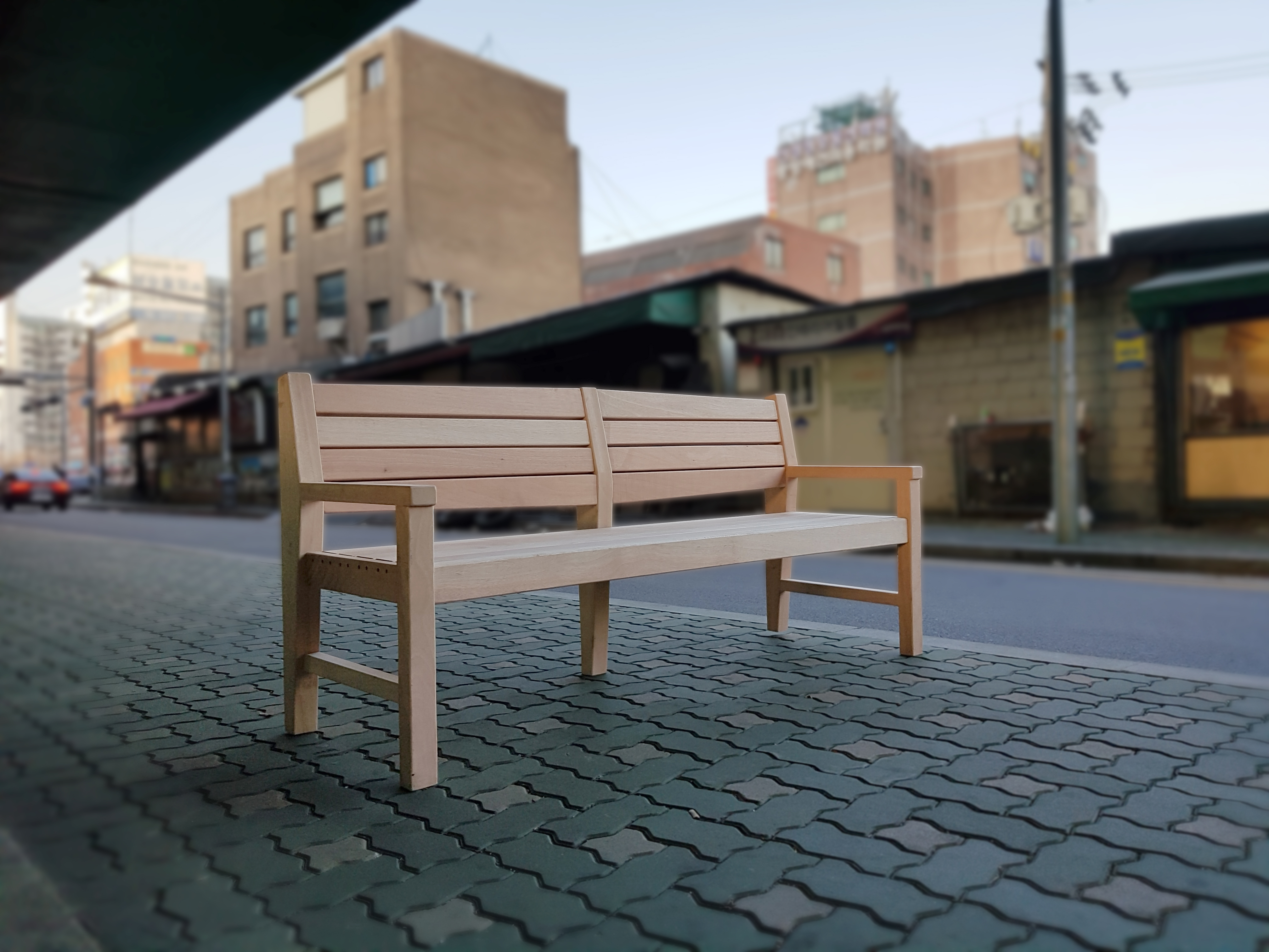 XX건설사로부터 납품의뢰를 받아 설계, 제작을 진행했던 원목벤치 입니다.