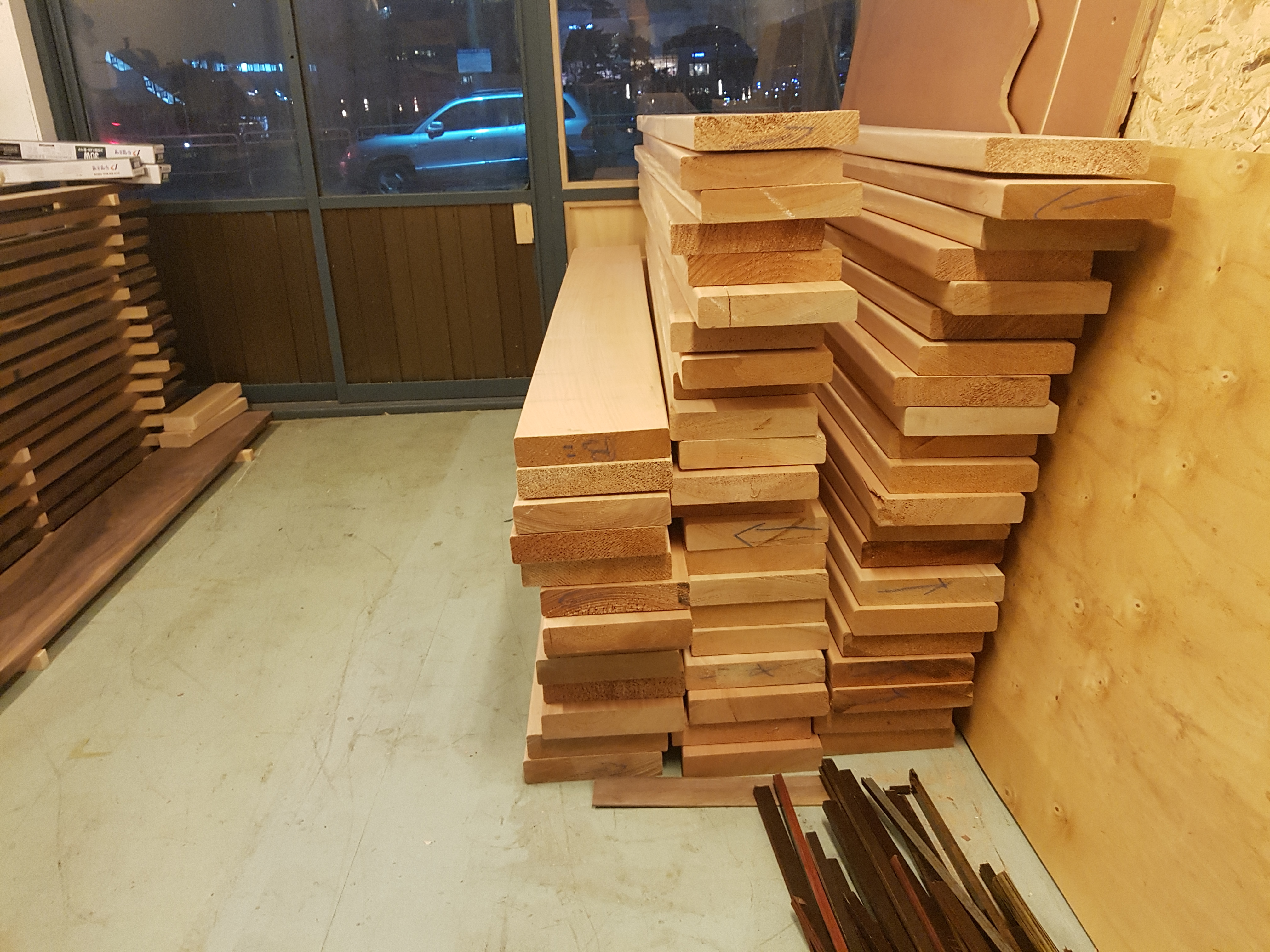 수량 파악 후 발주한 목재들 입니다.