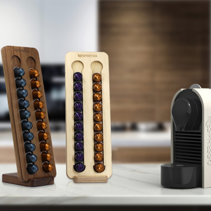 FULLEN x NESPRESSO네스프레소(NESPRESSO) 커피캡슐을 보관하기 위한 퓔렌의 인테리어 소품제안!! 자작합판, 월넛원목 두 가지 소재로 만든 네스프레스 원목 캡슐 거치대입니다. 제품 당 20개의 캡슐을 보관할 수 있으며, 다른 캡슐 거치대와 다르게 퓔렌에서 자체적으로 수 차례 시도한 가공법으로 만든 선입선출 방식으로 먼저 넣은 캡슐을 아래에서 뽑아서 사용가능합니다.끝이 라운드로 굴려진 군더더기 없는 심플한 디자인으로 튀지 않고 주변과 자연스럽게 어울리는 훌륭한 원목 인테리어 소품입니다.